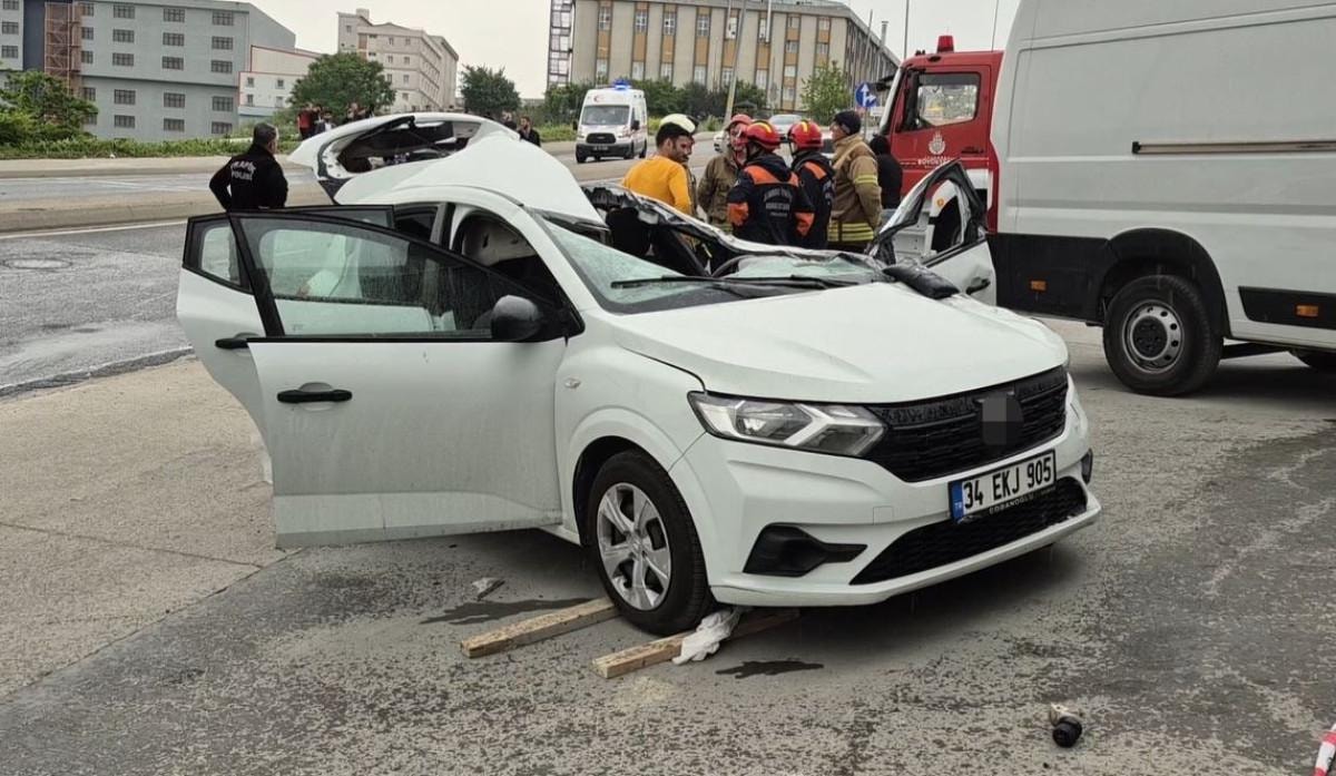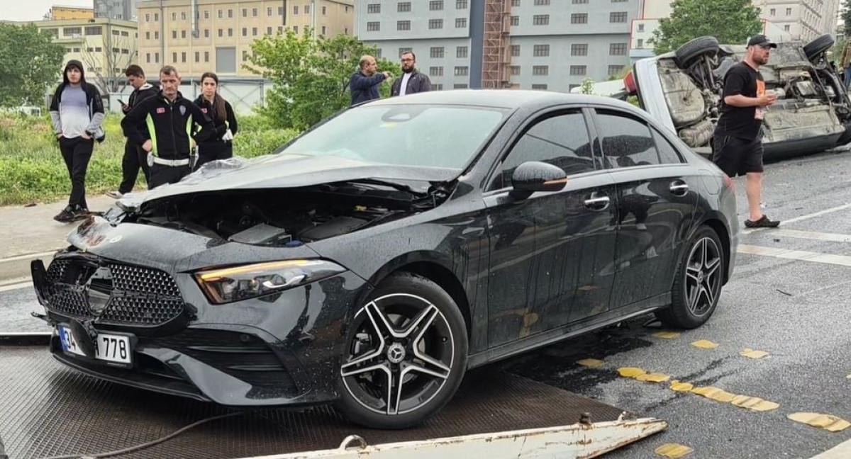 İstanbul Beylikdüzü'nde yokuş yukarı yüksek hızla seyreden otomobilin sürücüsü, yağış nedeniyle kayganlaşan zeminde kontrolünü kaybederek karşı şeride daldı.