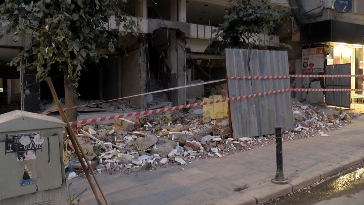 Yıkım işlemi sırasında kepçe operatörünün müdahalesiyle cadde tarafında kalan kısımda çökme meydana geldi.