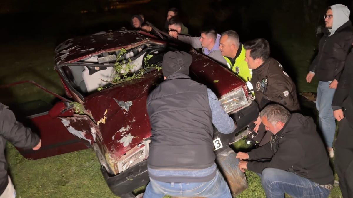 Otomobil hurdaya dönerken, içinde bulunan iki kişi kendi imkanlarıyla araçtan çıkıp olay yerinden kaçtı.