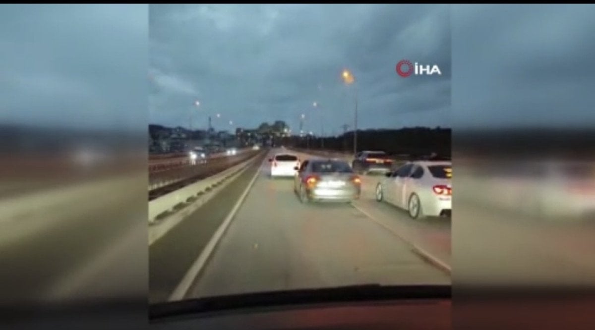 Silah sesleriyle birlikte panik yaşayan sürücüler duruma tepki gösterirken, konvoydaki diğer araçların da zikzak yaparak ilerlediği, trafiği tehlikeye düşürdüğü görüldü.