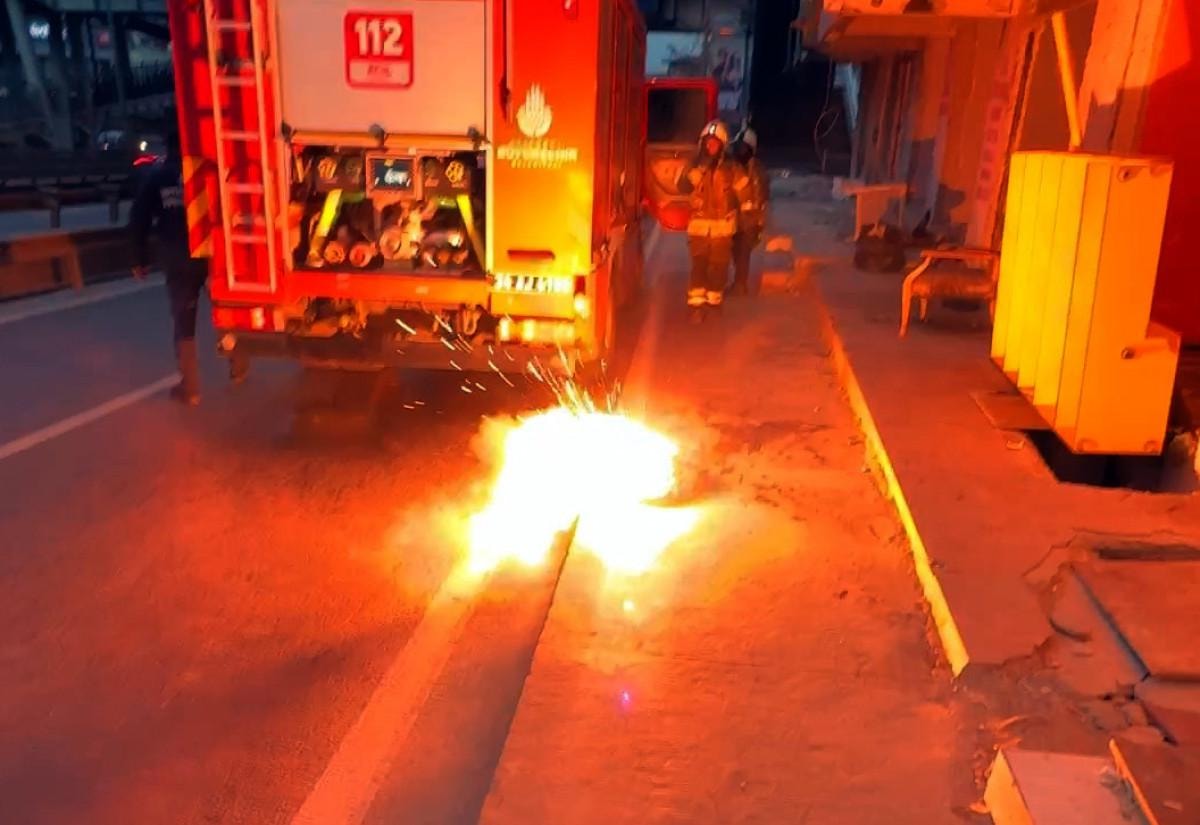 Ekipler yangını kısa sürede söndürdü. İtfaiye ayrılırken, bina önündeki kaldırımda yer alan elektrik kabloları peş peşe kıvılcımlar saçarak patladı.