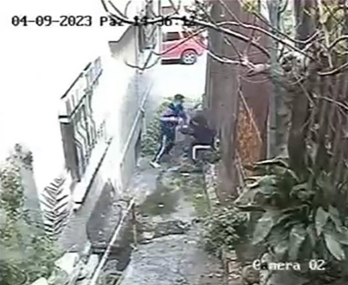 Kaçmaya çalışırken dengesini kaybeden hırsız, ev sahibi tarafından tekme tokat dövdü.