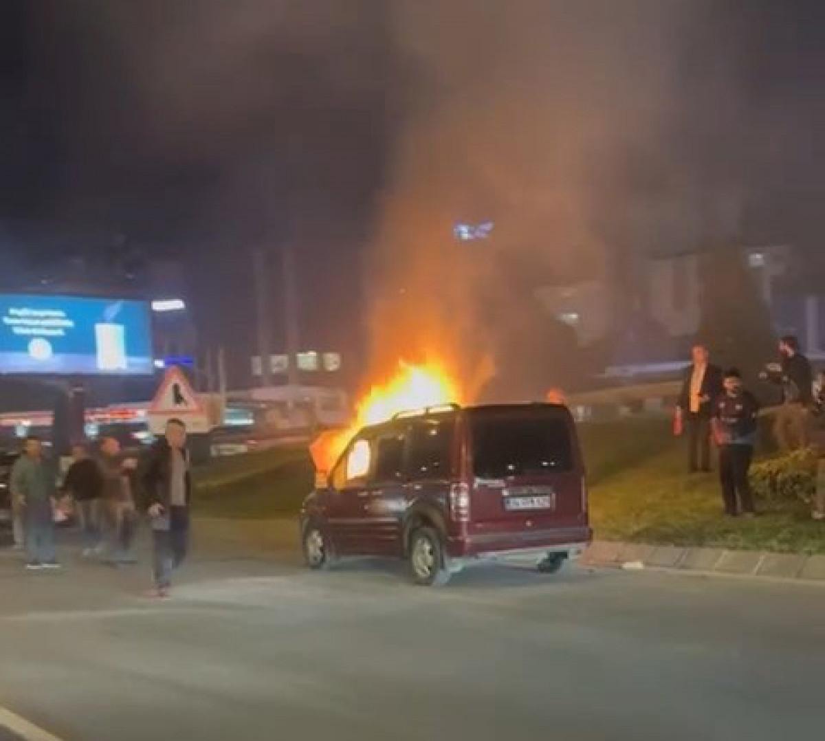 Hafif ticari aracın yandığı anlar vatandaşlar tarafından cep telefonu ile kaydedildi.