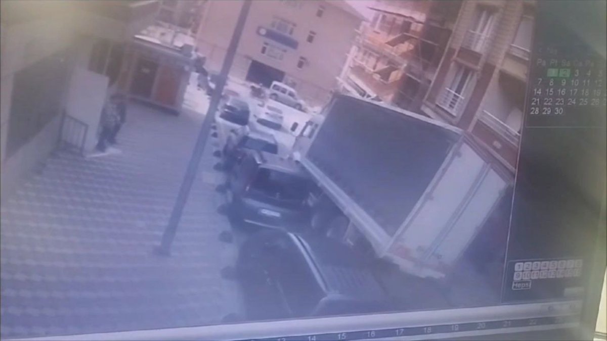 İstanbul Esenler Nine Hatun Mahallesi 163. Sokak'ta seyir halinde olan ve sürücüsünün direksiyon hakimyetini kaybettiği kamyon, park halindeki araçlara çarptı.