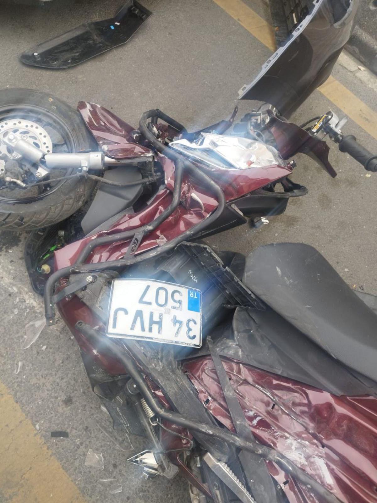 Kazada motosikletten savrularak araçların arasına düşen motosiklet sürücüsü Volkan Er yaralandı.