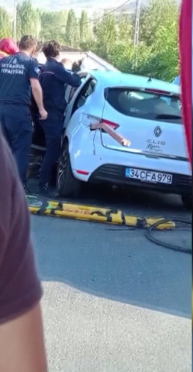Başakşehir'de sürücüsünün direksiyon hakimiyetini kaybettiği otomobil yol kenarındaki demir levhalara çarptı. Çarpmanın etkisiyle levhalardan kopan demir parçası, aracın ön kısmından girip sürücünün bacağına saplandıktan sonra arka kısmından çıktı.