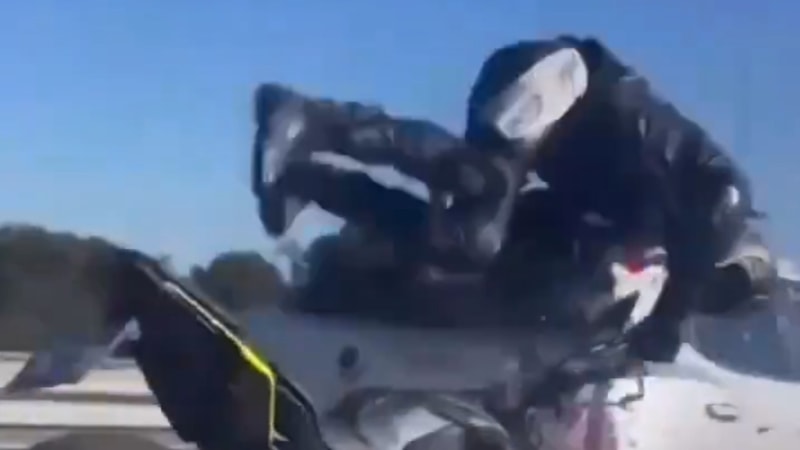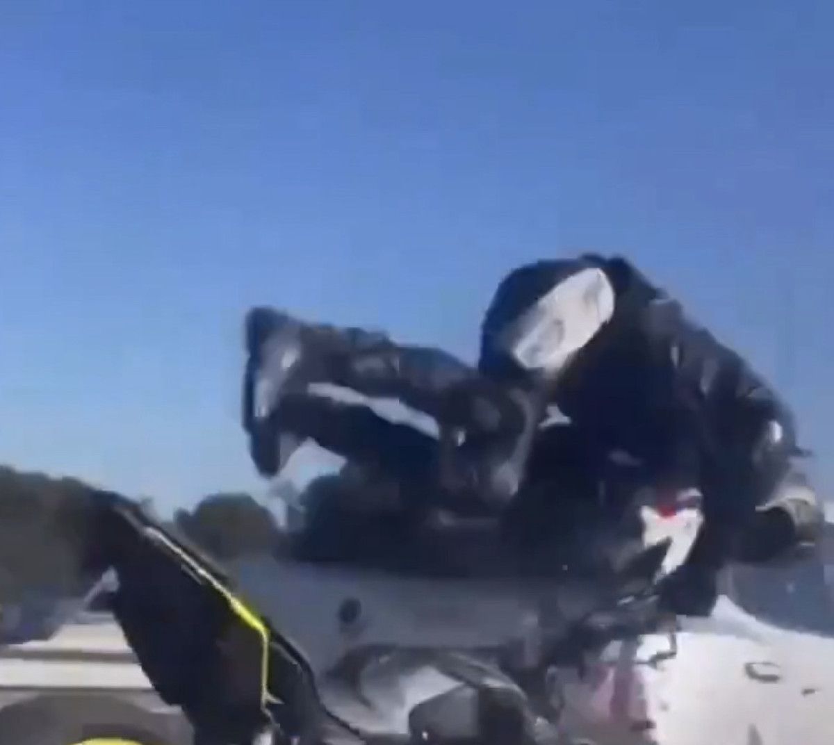 Motosiklet sürücüsünün havaya uçtuğu kazada, arabada şarkı söyleyerek yolculuk eden grup ise şoka girdi.
