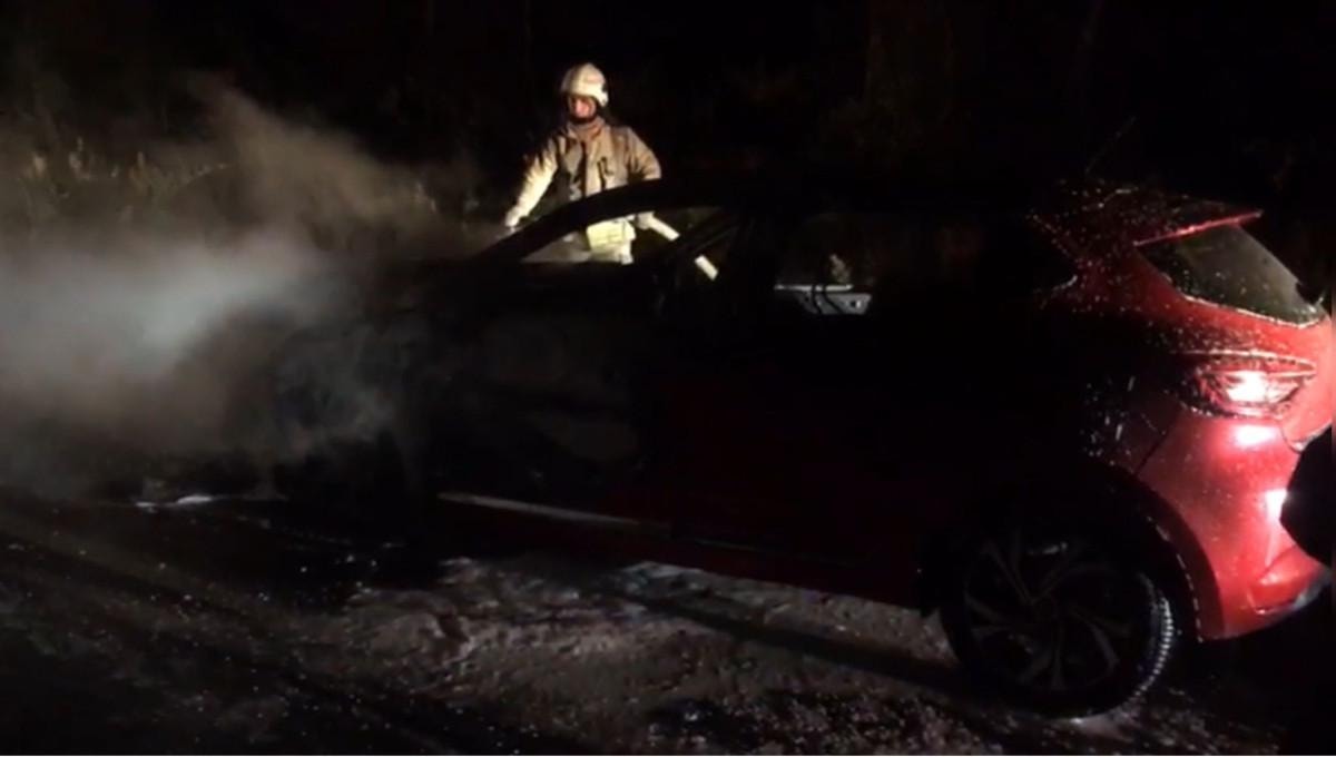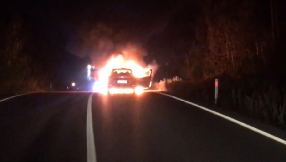 Kısa sürede olay yerine gelen ekipler, alev alev yanan otomobile müdahale etti.