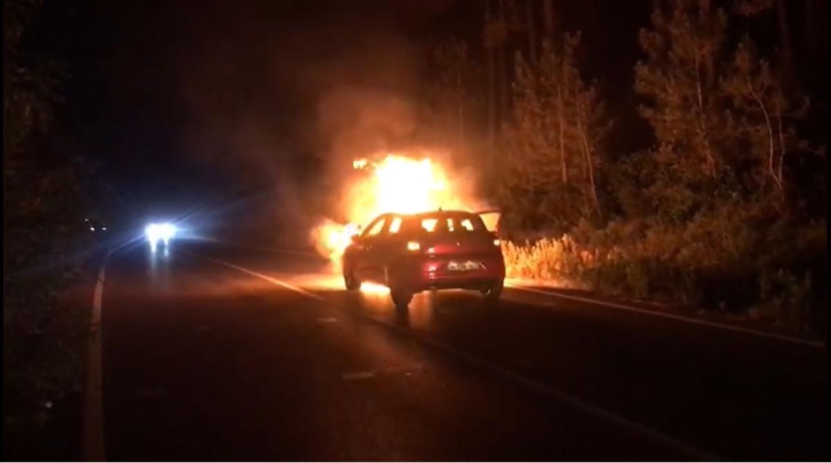 Alevler kısa sürede otomobili sardı.