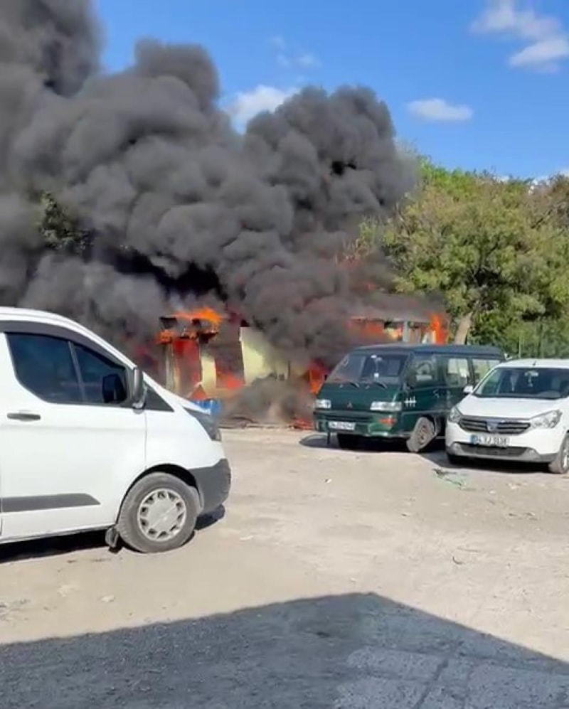 Bakırköy’de bir pazar yerinin otoparkında çay ocağında yangın çıktı. Patlayan tüpler alevlerin hızla yayılmasına neden olurken, olay anı vatandaşların cep telefonuyla kaydedildi.
