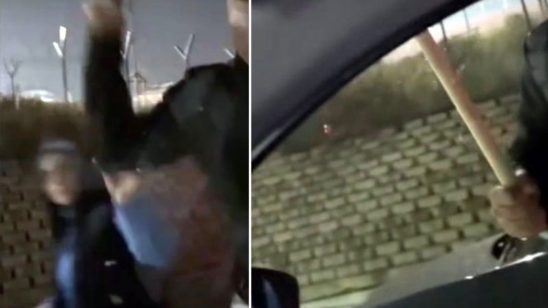 Görüntülerde sopalı sürücünün defalarca aracın cam ve kaportasına vurduğu, diğer sürücünün ise bu anları kayda aldığı görüldü.