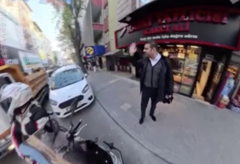 Yaşanan olay, bir motosiklet sürücüsünün kask kamerasına saniye saniye yansıdı.