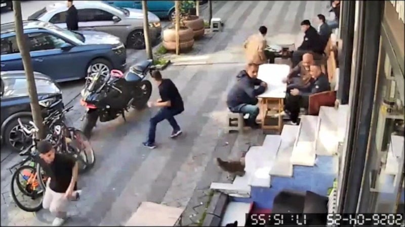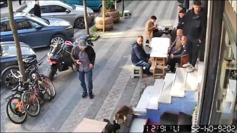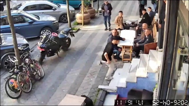 Olay anı iş yerinin güvenlik kamerasına saniye saniye yansıdı.