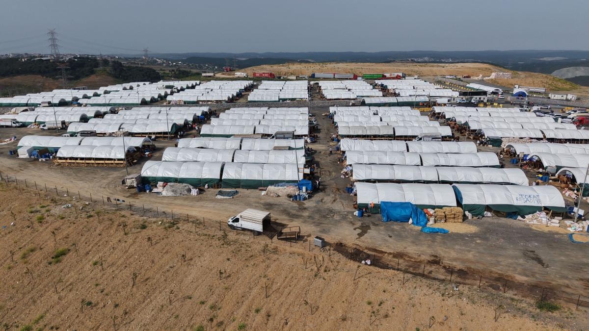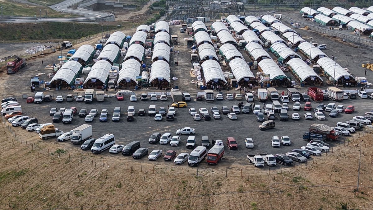 Sultangazi kurban satış merkezindeki hareketlilik drone'la havadan böyle görüntülendi.