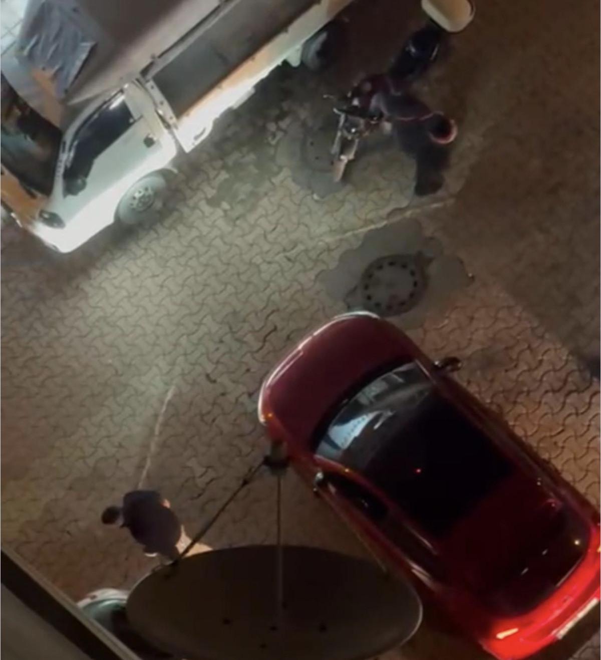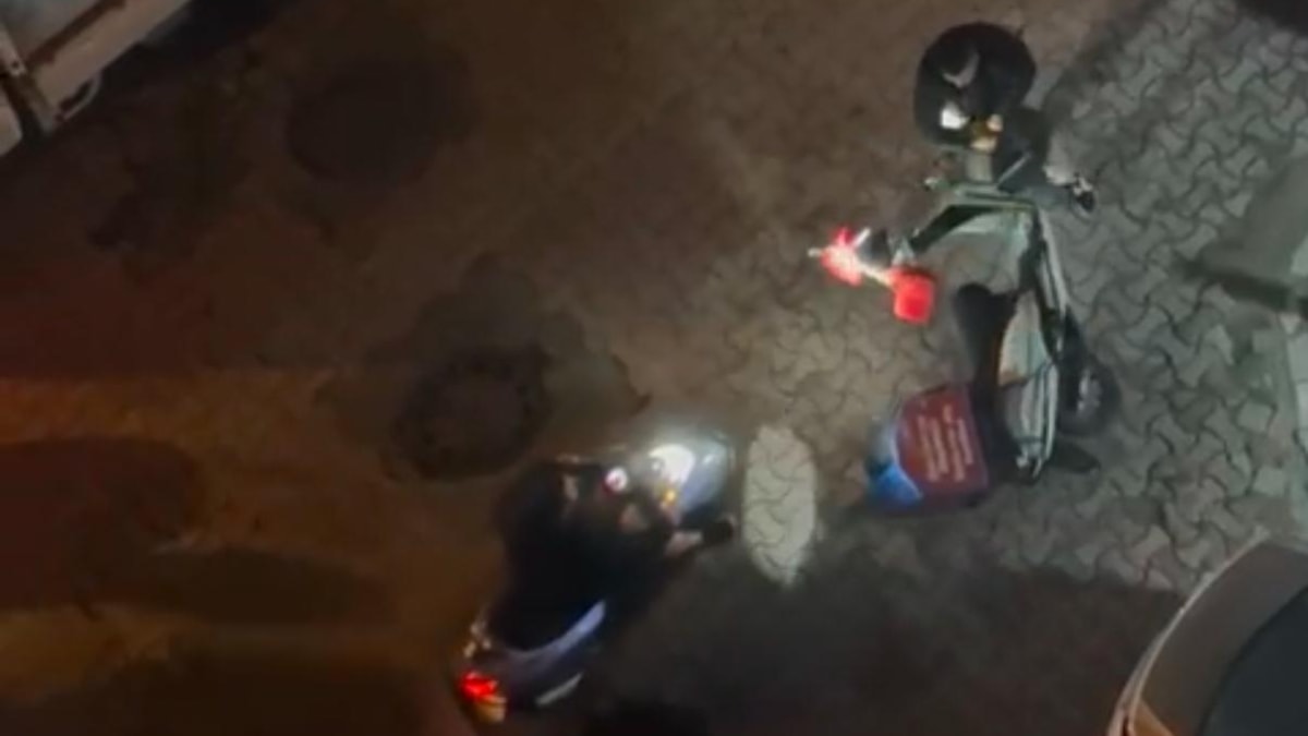 Öfkeli sürücü, küfürler ettikten sonra “Beni mi vuracaksınız?" diyerek kuryenin bıraktığı motosiklete zarar verdi.