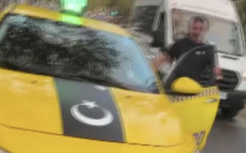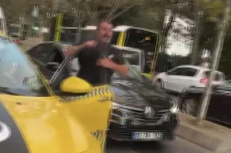 İstanbul Ataşehir'de taksi şoförü, trafikte tartıştığı motosikletli kuryeye hakaret ettikten sonra yumruk attı.