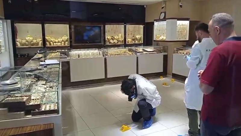 Olay yeri inceleme ekipleri, kuyumcuda ve çevresinde detaylı inceleme yaptı.