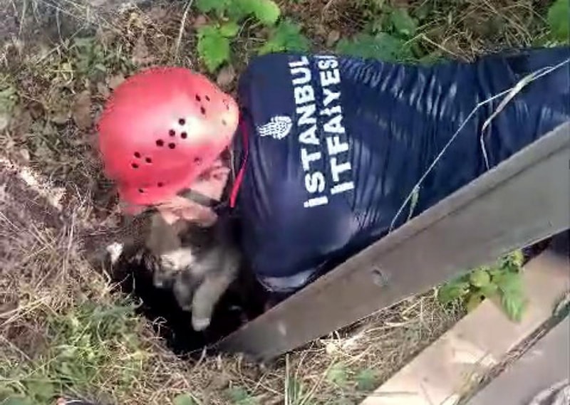 Yaklaşık 5 metre derinlikteki kuyuya kısa süre önce dünyaya gelen yavru köpeklerin düştüğü anlaşılınca itfaiyeden yardım istendi.