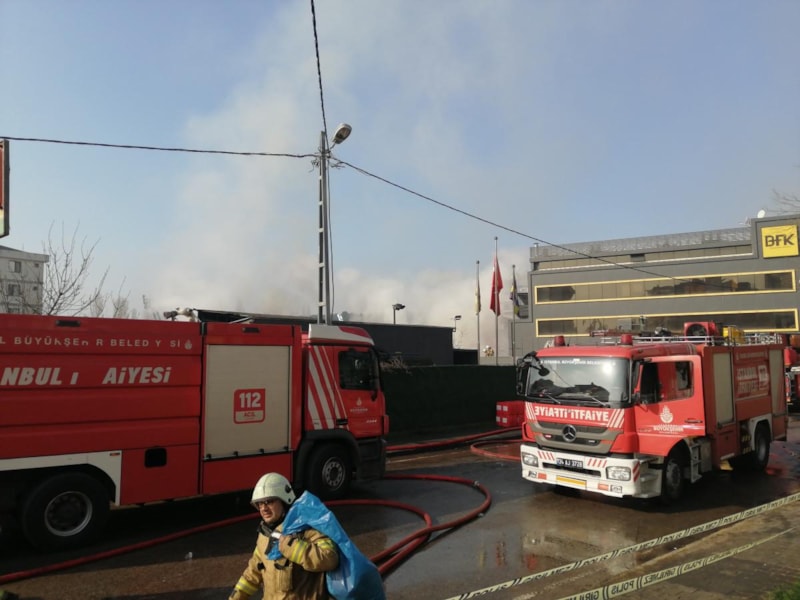 Bugün tatil, iş yerinde kimsenin olduğunu zannetmiyorum olsa olsa güvenlik vardır. Burası lastik deposu çok büyük bir yer. Şu an söndürüldü gibi" dedi.