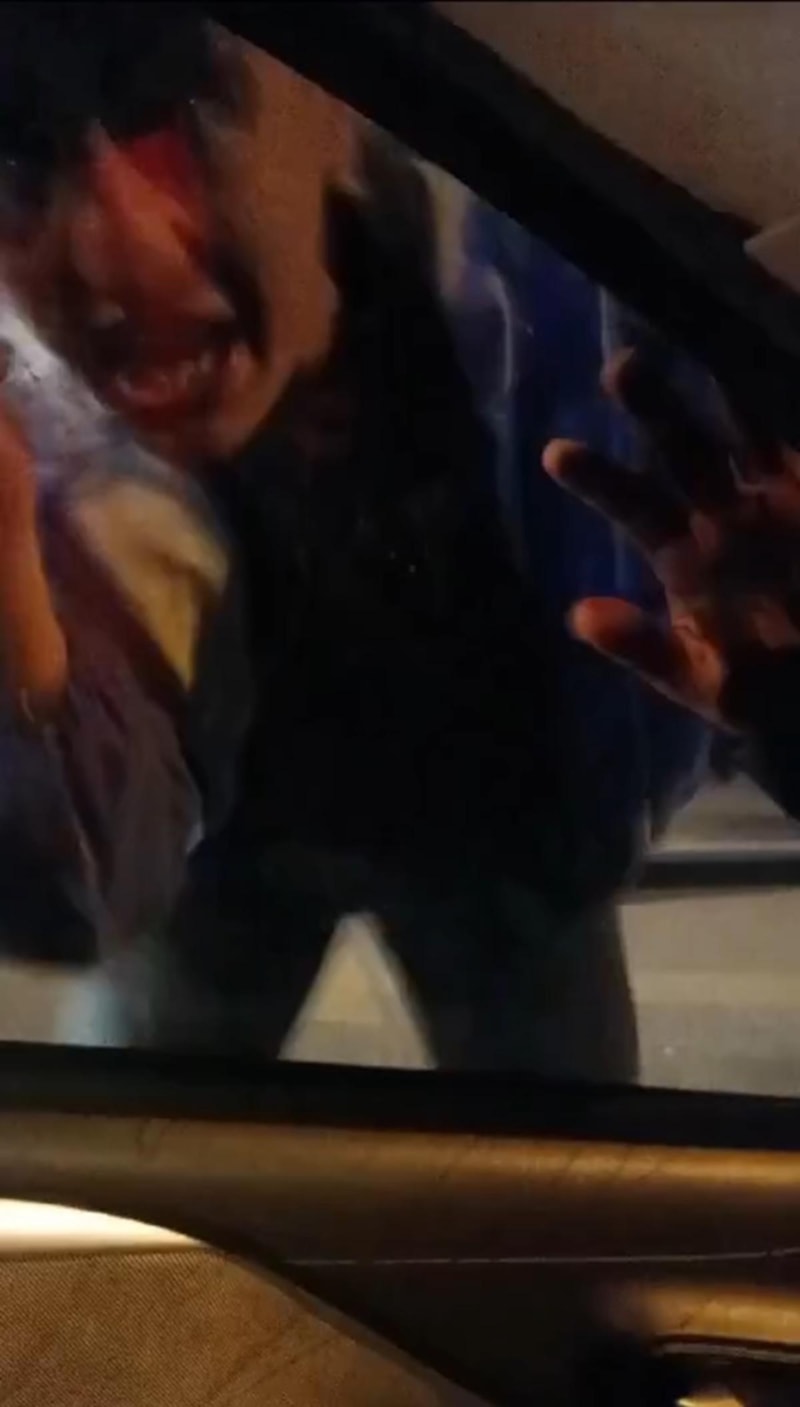 Otomobile tekme ve yumruk attı