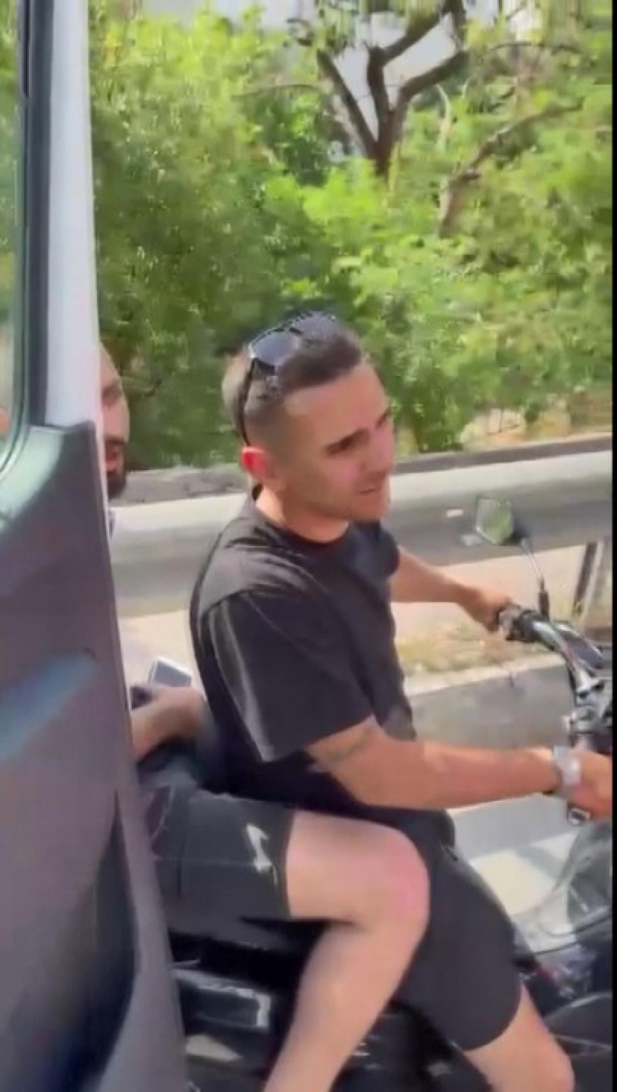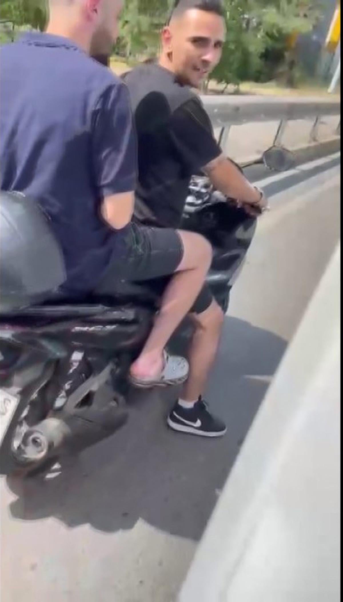 İki trafik magandasının kask takmadıkları dikkat çekti. O anlar ambulans şoförü tarafından cep telefonuyla kayıt altına alındı.