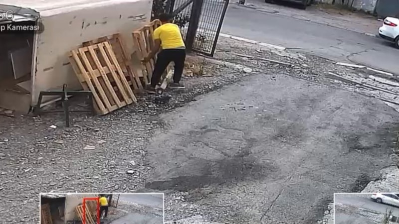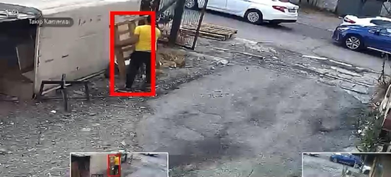 İstanbul Avcılar'da kimliği belirlenemeyen bir kişi mobilya mağazasına ait arazide istiflenen paletleri görünce içeri girerek üç tanesini dışarı taşıdı.
