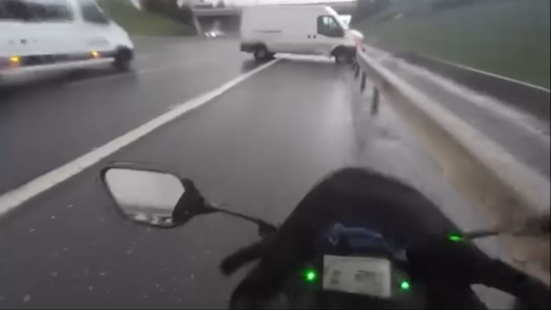 O anlar bir motosiklet sürücüsünün kask kamerasına yansıdı.