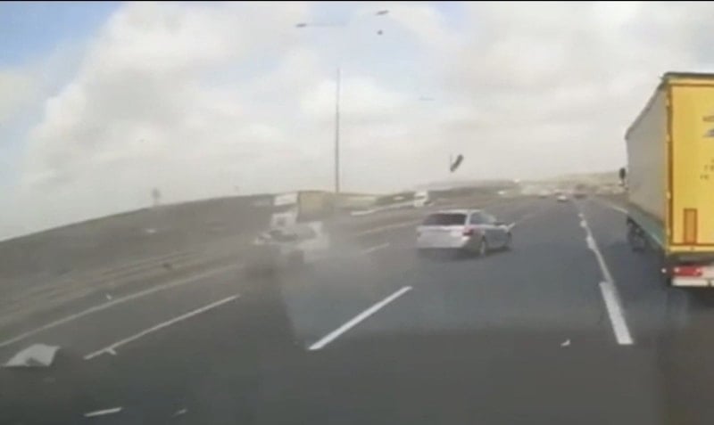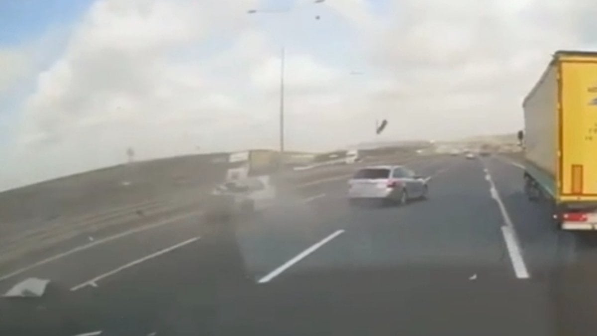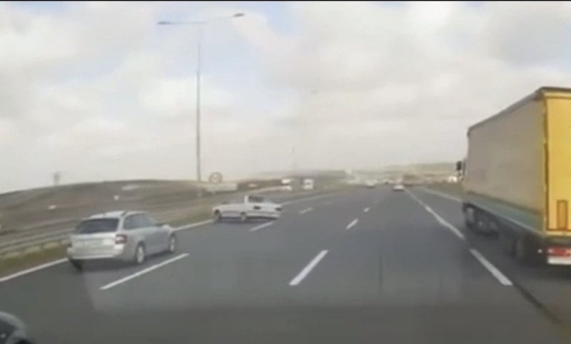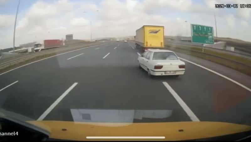 Kaza anı ise arkadan gelen bir tırın araç kamerası tarafından kaydedildi.