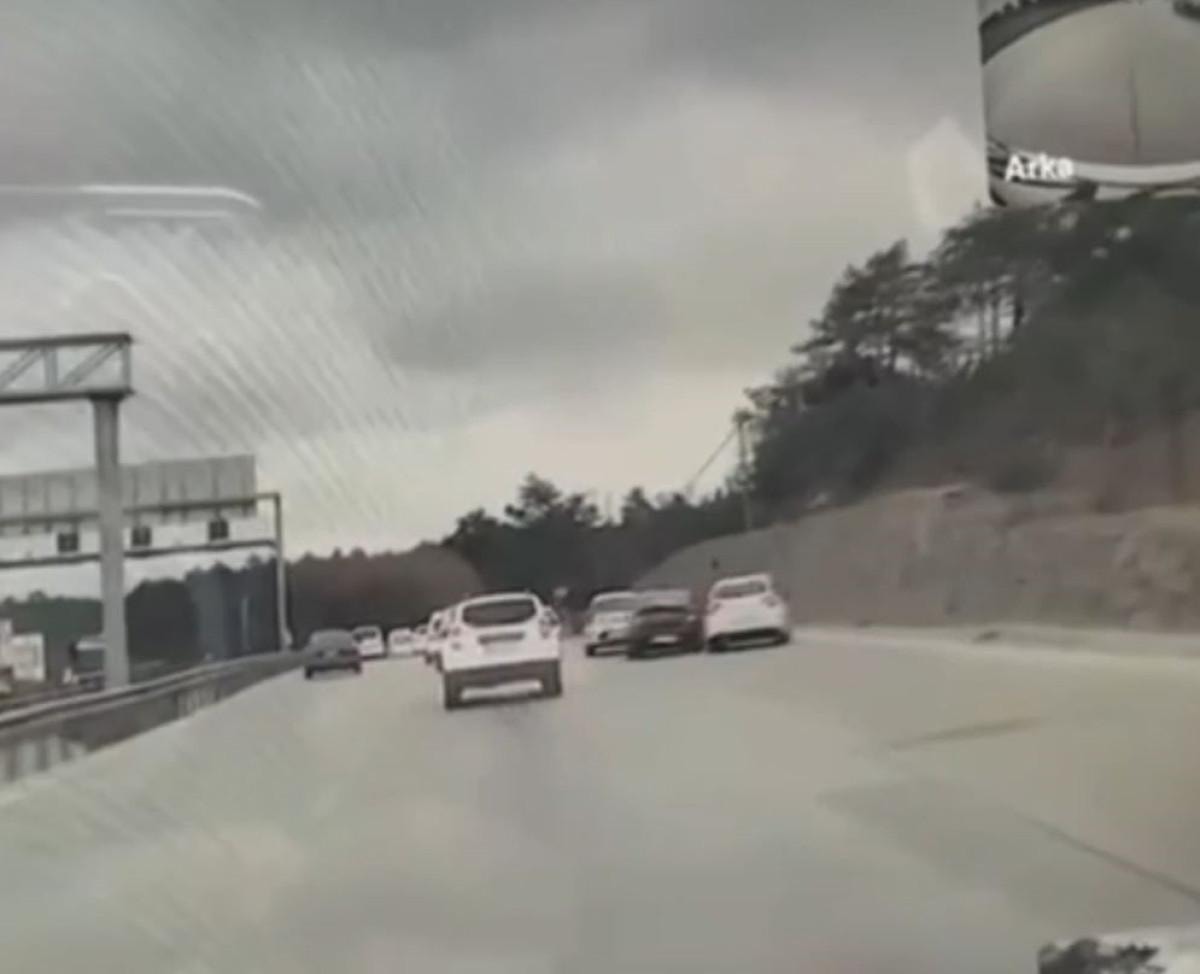 Arnavutköy ilçesinde iki trafik magandası, Eski Edirne Asfaltı Caddesi üzerinde makas atarak ilerlemeye başladı.
