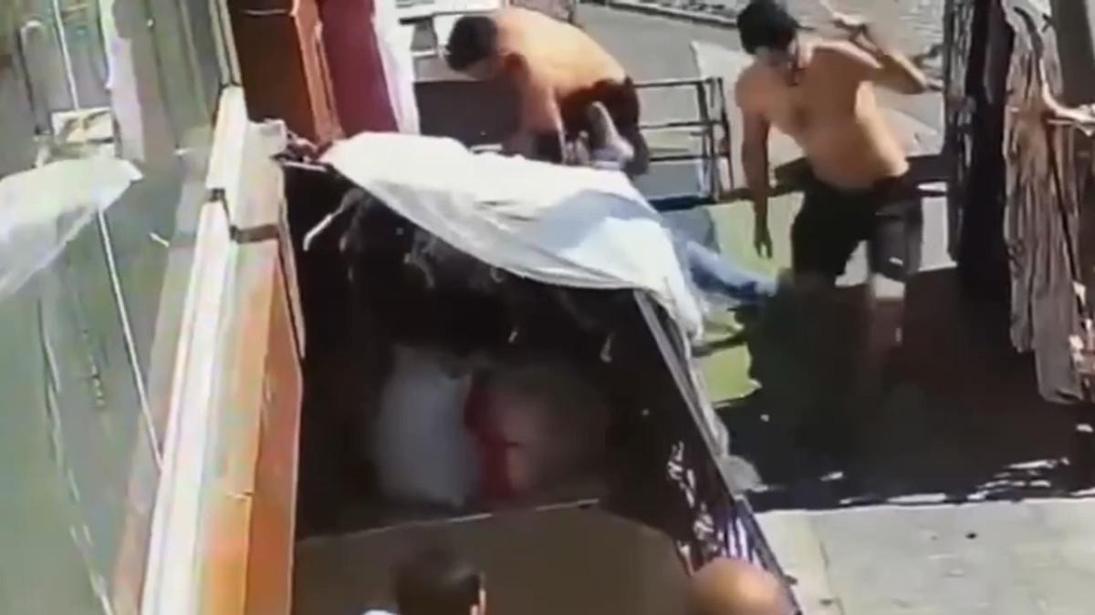 Çıkan tartışma sonrası otomobilden inen sürücü, kamyondan ürün indiren işçilere bıçakla saldırmaya başladı.
