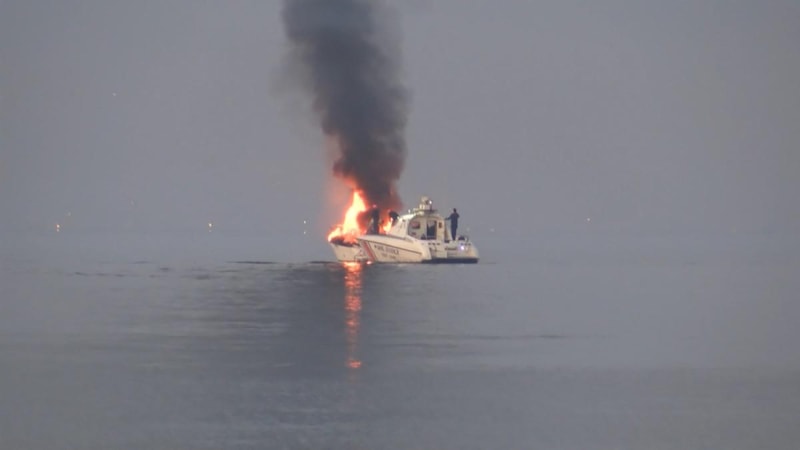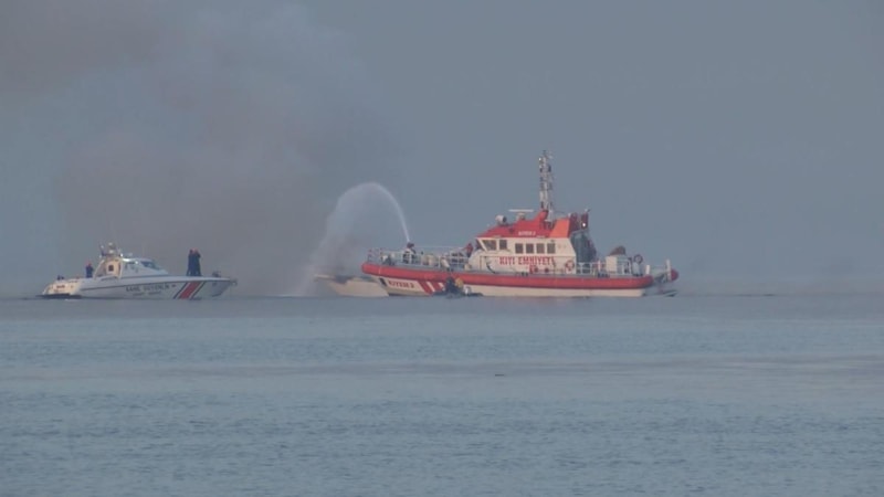Tekneden yükselen alevlerin yükseldiğini görenler, yangını söndürmek için uzun süre çaba gösterdi.