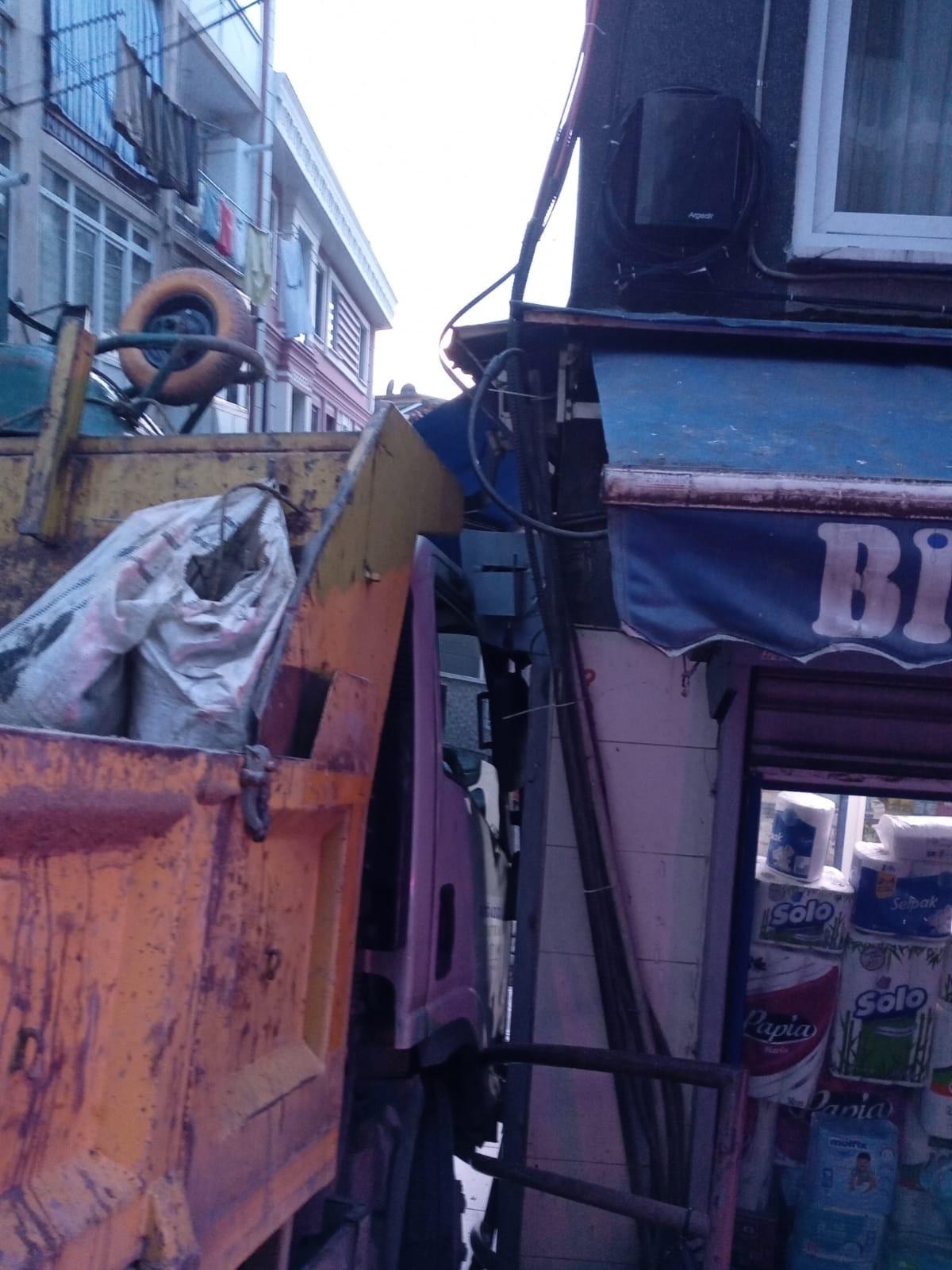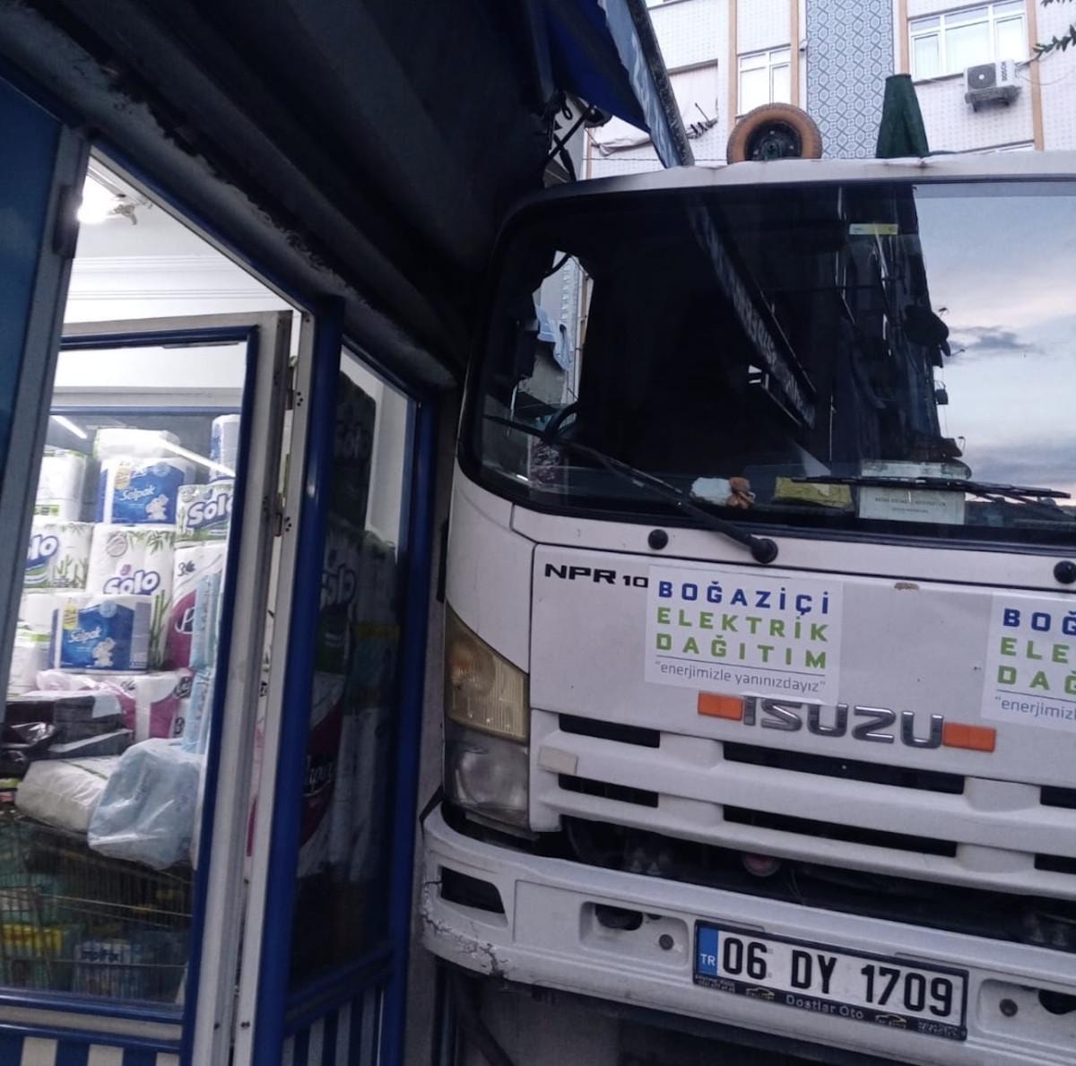 Market sahibi Savaş Peçe, "Dükkanda duran diğer ortağım beni aradı. Kamyonet çarpmış geldiğimde de zaten öyleydi. Allahtan kimse yoktu orada da can kaybı olmadı şoförün dikkatsizliğiydi.