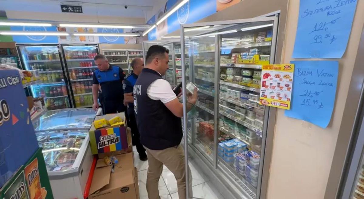 Ekipler, Cihangir'deki bir pazarda son kullanma tarihi geçmiş birçok ürün belirledi. Tarihi geçen peynir çeşidi, kırmızı et ürünleri, tavuk, tatlı ve sütleri toplatılarak siyah iki torbaya koyuldu ve tutanakla market sorumlusuna teslim edildi.