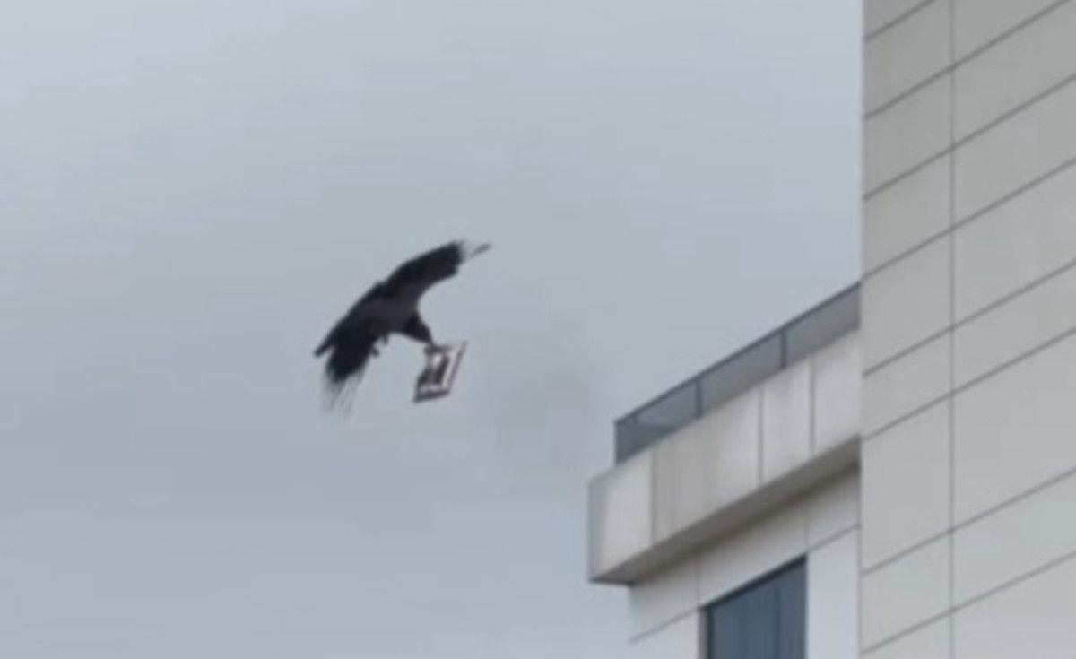 Kuşlar arasında saksağan türü hırsız olarak bilinse de bu defa olayın faili bir karga oldu.