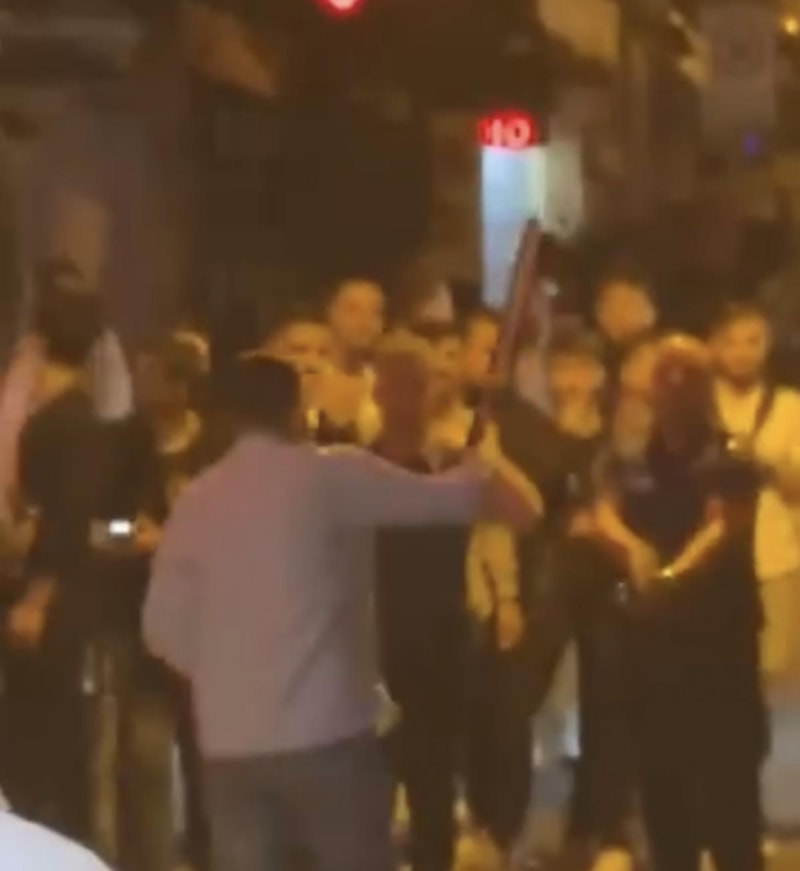 Beşiktaş'ta "eşime baktılar" diyerek döner bıçağıyla kendisine zarar verip çevredekileri tehdit eden Bilal B., polis ekipleri tarafından gözaltına alındı. Polisin silah çektiği ve şüphelinin yakalandığı anlar cep telefonu kamerasına yansıdı. Adliyeye sevk edilen şüpheli tutuklandı.