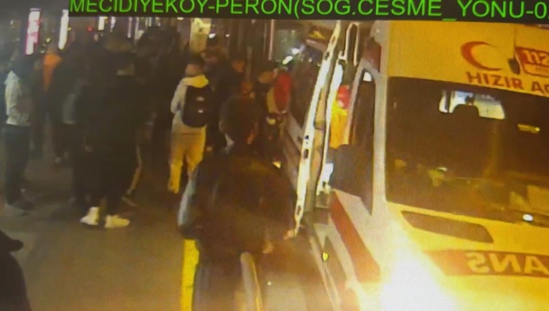 Görüntülerde, sağlık ekiplerinin istasyona geldiği ve ağır yaralanan Abdurrahim Gürsoy’u sedyeye ambulansla aldıkları görülüyor.