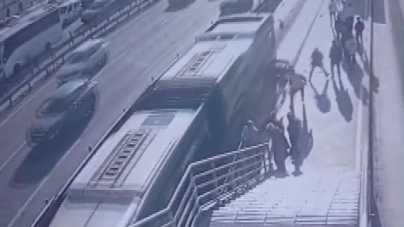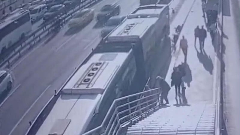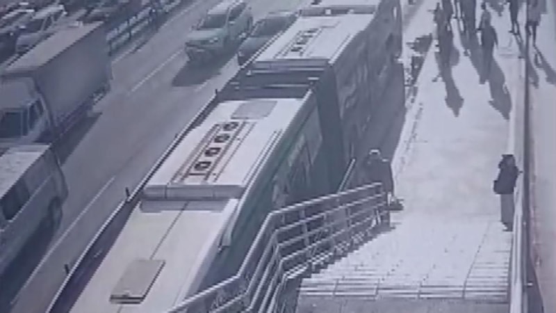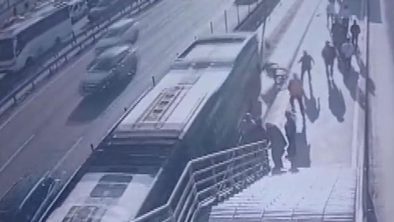 Görüntülerde, tekerlekli sandalyesiyle metrobüs yoluna düşen Hüseyin C.'ye metrobüsün çarptığı anlar yer aldı.