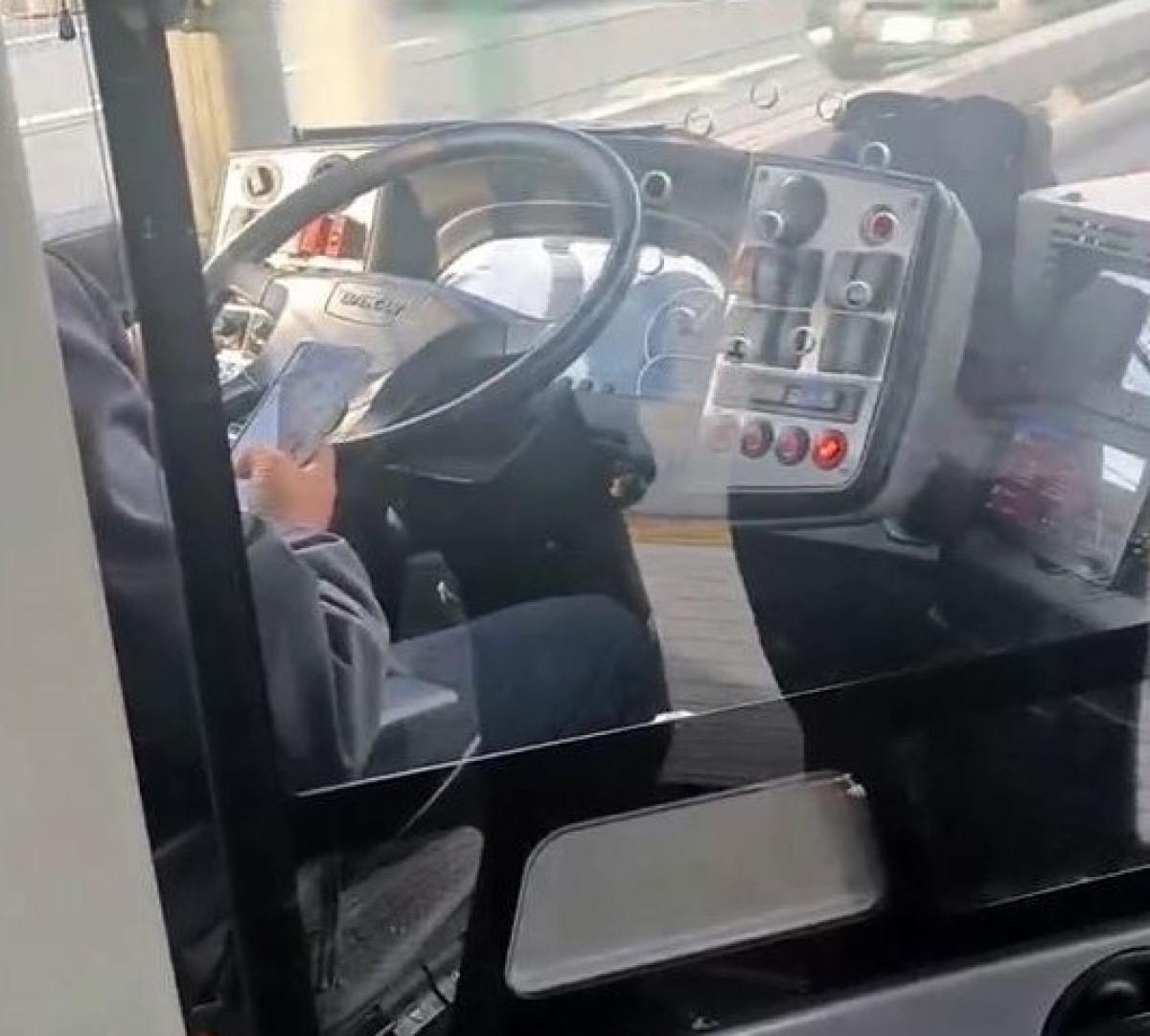 O anları fark eden bir başka yolcu, metrobüs sürücüsünün hem yolcuyla sohbet ettiği hem de aracını kullanırken cep telefonuyla ilgilendiği anları kayda aldı. Görüntülerde, sürücünün araç hareket halindeyken sohbet ettiği ve ardından da telefonla meşgul olarak yoluna devam ettiği açıkça görülüyor.