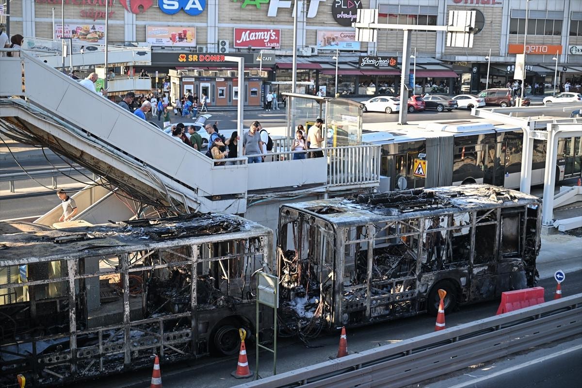 Bakırköy ilçesindeki İncirli metrobüs durağında, seyir halindeki bir metrobüste henüz belirlenemeyen bir nedenle yangın çıktı.