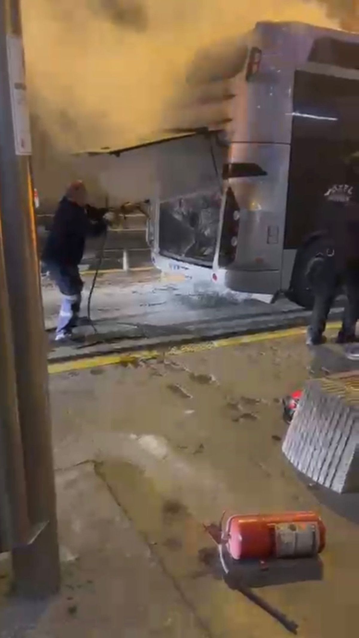 Metrobüs güvenlik görevlilerinin de desteğiyle yangın kısa sürede kontrol altına alındı.