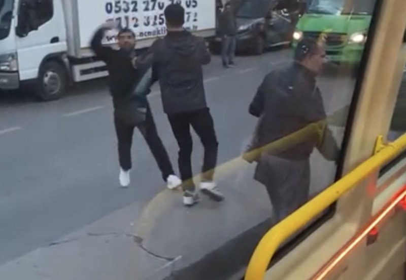 Yolcuların bağırarak tepki gösterdiği saldırgan, daha sonra olay yerinden uzaklaştı.