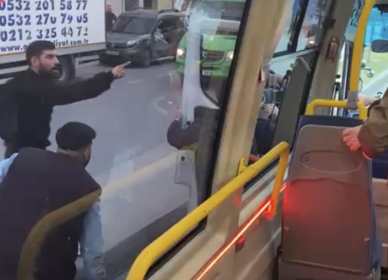 Vatandaşların olay yerinden uzaklaştırdığı saldırgan şoför, bu kez diğer şoföre 'Sen öldün' tehdidinde bulundu.