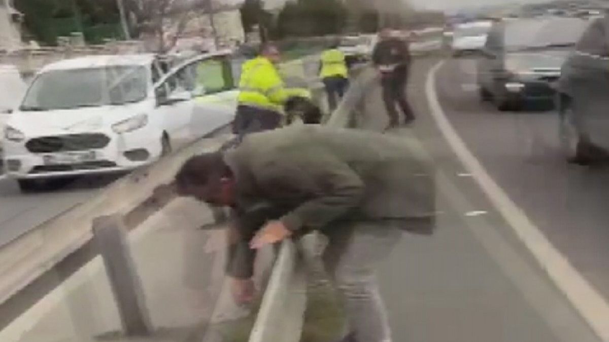 Sürücüler ve araçlardan inenler kuryeye yardım etti.
