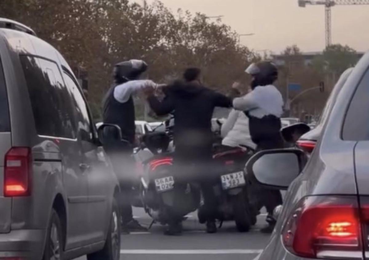 - Başka bir olayda, kırmızı ışıkta duran iki motosikletli tartışıp kavga etti ve kimi sürücüler müdahale etti, kimileri ise izledi.