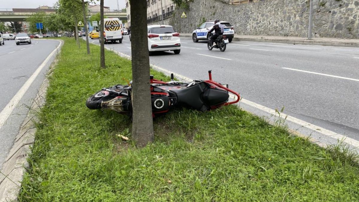 Küçükçekmece Kanarya Mahallesi Halkalı yönünden sahil yolu istikametine giden motosiklet sürücüsü, virajda hız nedeniyle direksiyon hakimiyetini kaybetti.