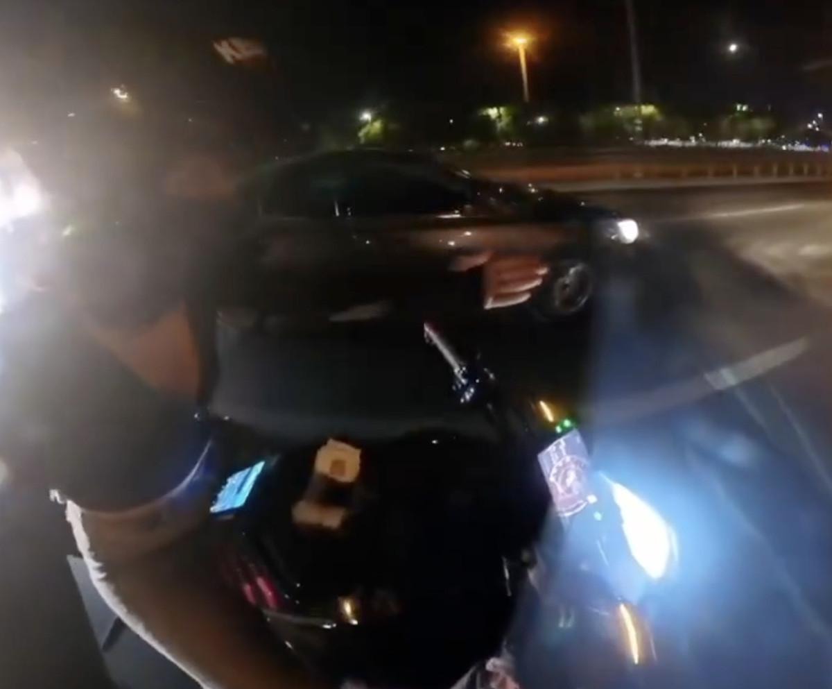 Ardından aralarında konuşan motosiklet sürücüleri, otomobilin dikiz aynasını kırmaya karar verdi.