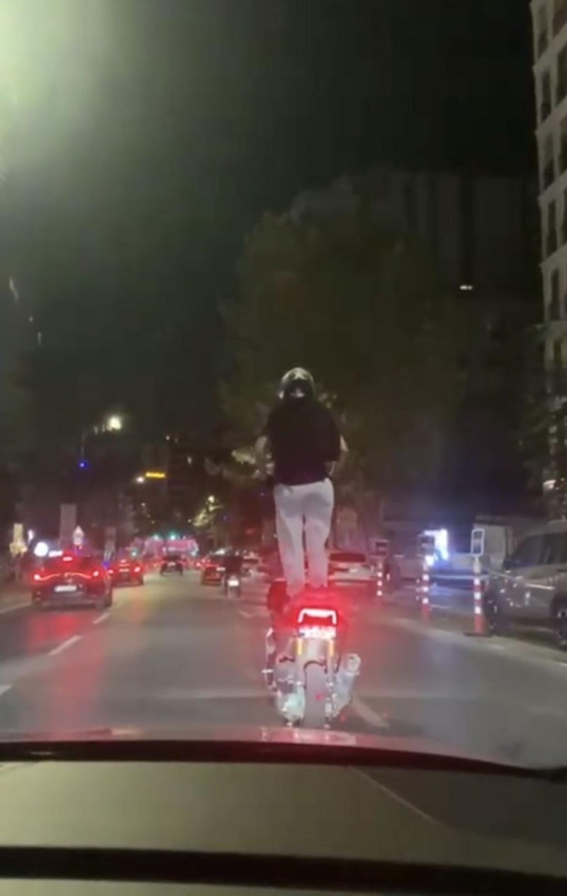 Bağdat Caddesi'nde yaşanan olayda motosiklet sürücüsü, trafikte seyir halindeyken motosikletinin üzerinde ayağa kalkarak tehlikeli hareketler yaptı.