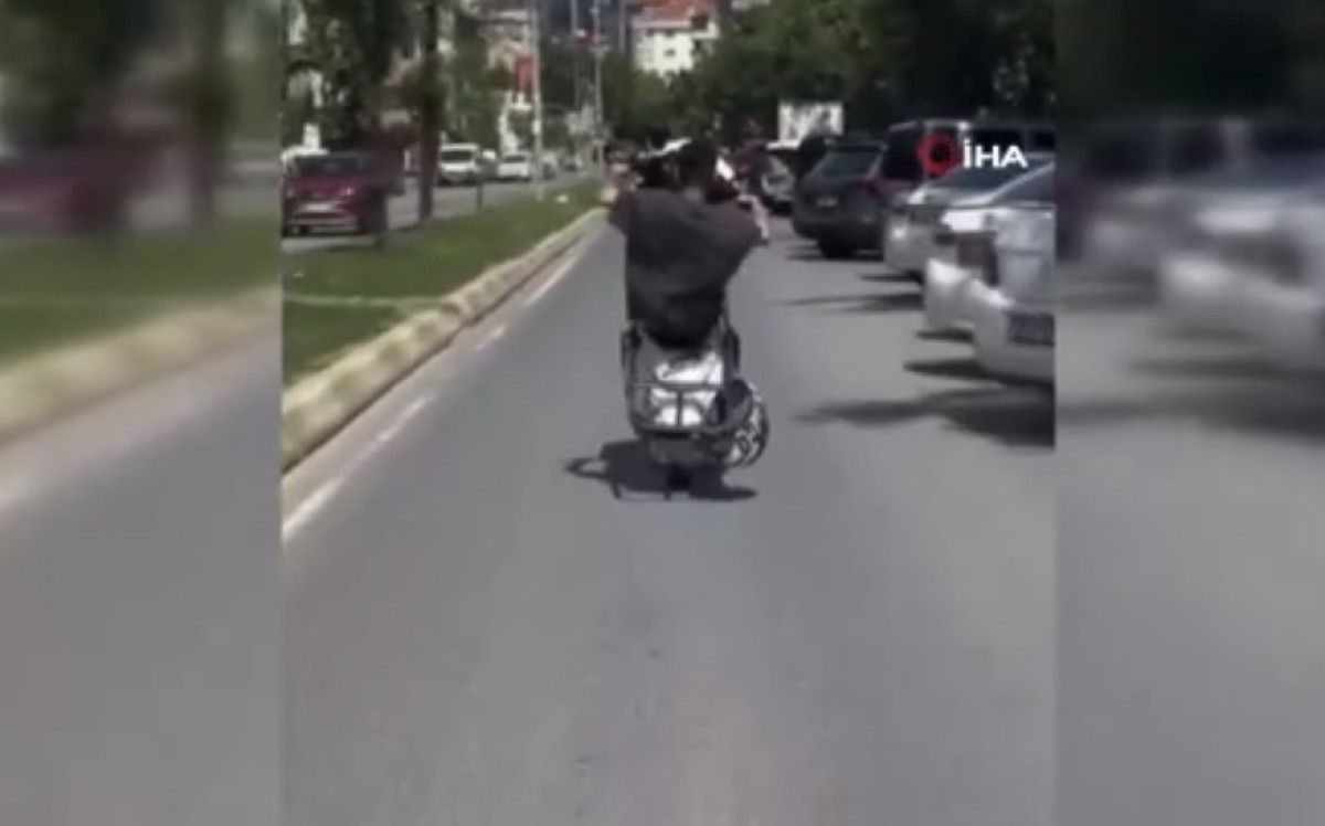 Olayda, sürücü, motosikletle seyir halindeyken tek teker üstünde giderek akrobatik hareketler yaptı.