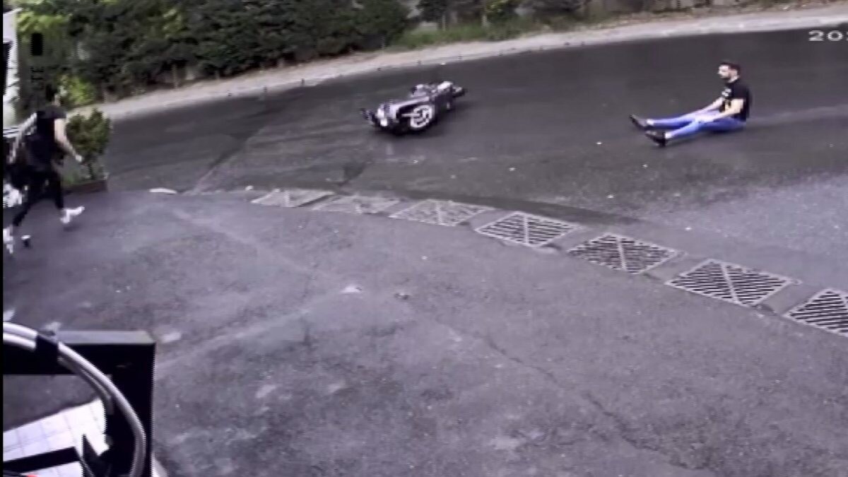 Virajda motosikletten düşen Tüylüoğlu oturur vaziyette yola düştü. Motosiklet ayrı, kendisi ayrı yokuş aşağı kaymaya başladı.