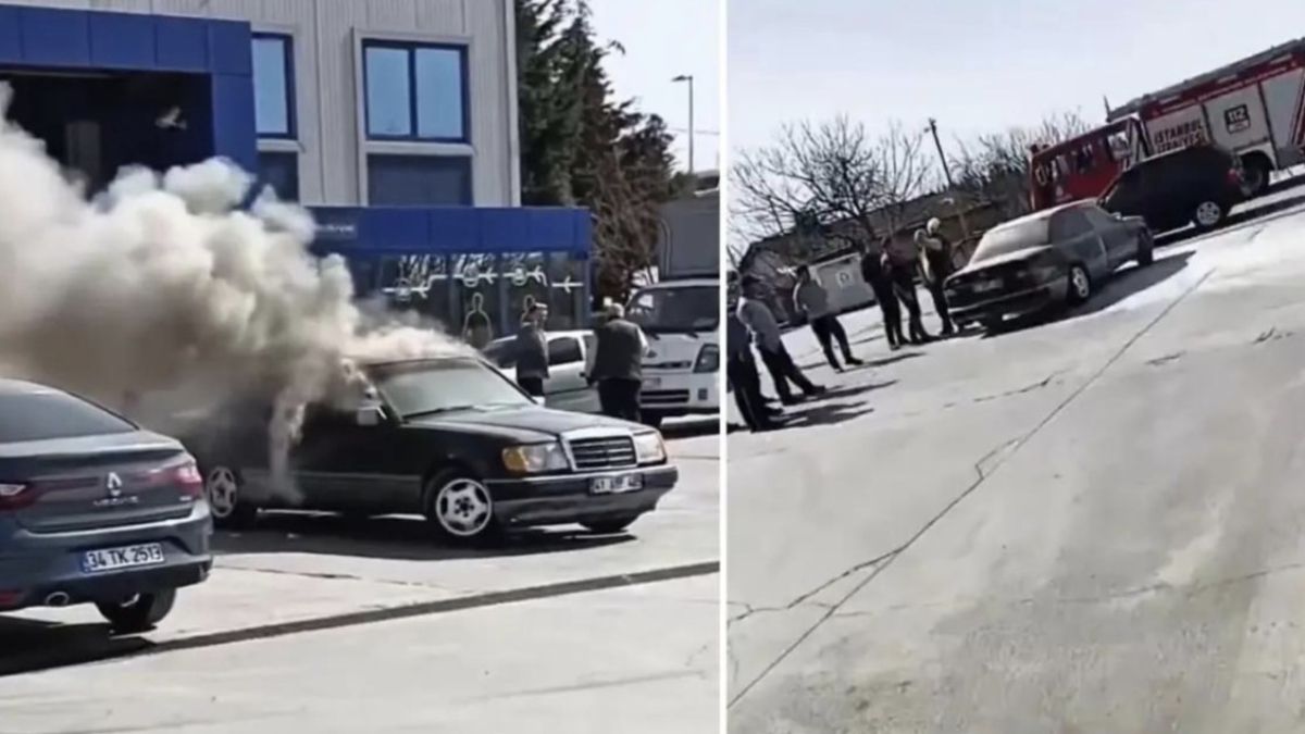 Kısa sürede alev alan otomobilden yoğun bir duman yükseldi.